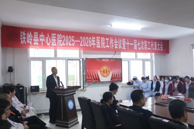1月15日下午,我院召开铁岭县中心医院2025-2026年度医院工作会议暨十一届七次职工代表大会。院党政领导班子、职工代表共同出席此次大会。大会在庄严的国歌声中拉开帷幕。院长姜风作《2025-2026年度医院工作报告》,系统回顾了2025年
